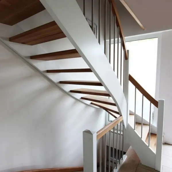 Отделка бетонной лестницы (облицовка бетонной лестницы) - это очень трудоемкий процесс, требующий специальных навыков. Неправильная установка деталей может привести в будущем к скрипу, кручению и отклеиванию элементов лестницы. Каждая ступень во время "приклеивания" должна нагружаться весом в 30-45 кг. (в зависимости от ее вида). Также материал в обязательном порядке должен быть высушен до мебельной влажности (8-10%). Очень часто нам приходиться переделывать некачественную работу других специалистов.