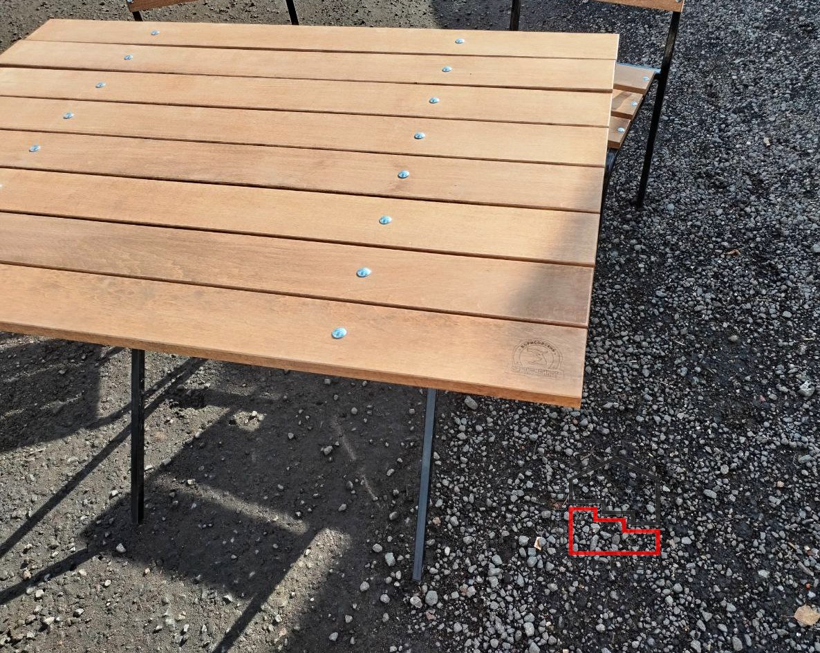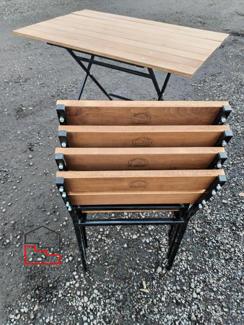 - 1 стол со "складными" ножками (складывание через откручивание гаек крепления) и габаритом столешницы 1200х800мм,